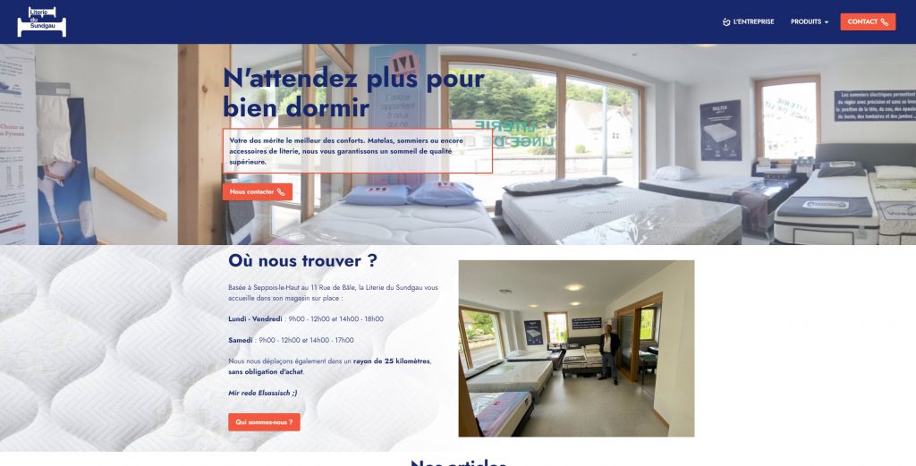 Une page, toutes les informations importantes de votre activité, avec formulaire de contact et contenu rédigé / optimisé SEO.